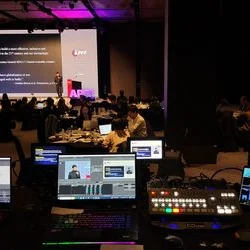 카메라를 여러 대 구성하고 마이크, 믹서, 통합방송시스템을 이용해서 인터넷 방송을 할 수 있습니다. 통합방송시스템을 통해 화면전환(스위쳐), 자막, 녹화, 오디오 믹싱, 인터넷 송출까지 모두 가능합니다.
