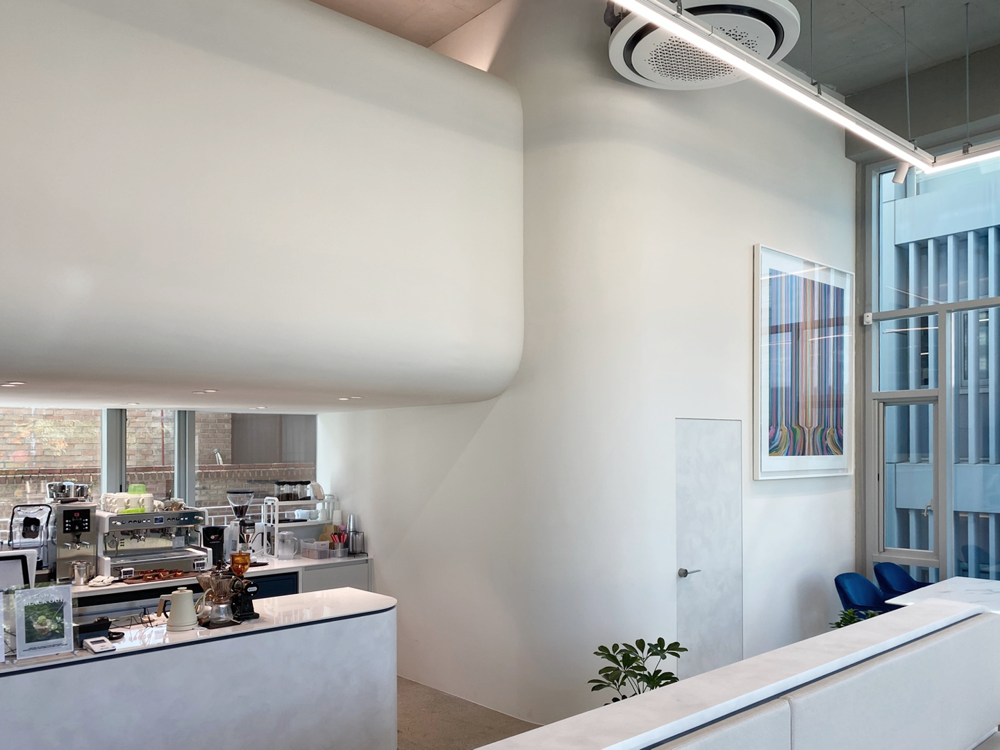 매장에 들어서는 순간부터 고객은 공간의 분위기를 온몸으로 느끼게 됩니다. 뷰티샵의 첫인상을 결정하는 입구와 제품 진열 공간에 특히 신경 썼습니다. 화이트 톤의 깔끔한 마감과 은은한 간접 조명은 방문객에게 편안하고 고급스러운 느낌을 주며, 곡선형 선반은 제품을 더욱 돋보이게 합니다. 외부 자연광과 어우러져 밝고 활기찬 분위기를 연출, 고객들이 부담 없이 제품을 둘러보고 상담을 받을 수 있도록 유도했습니다.