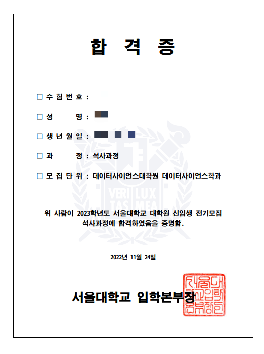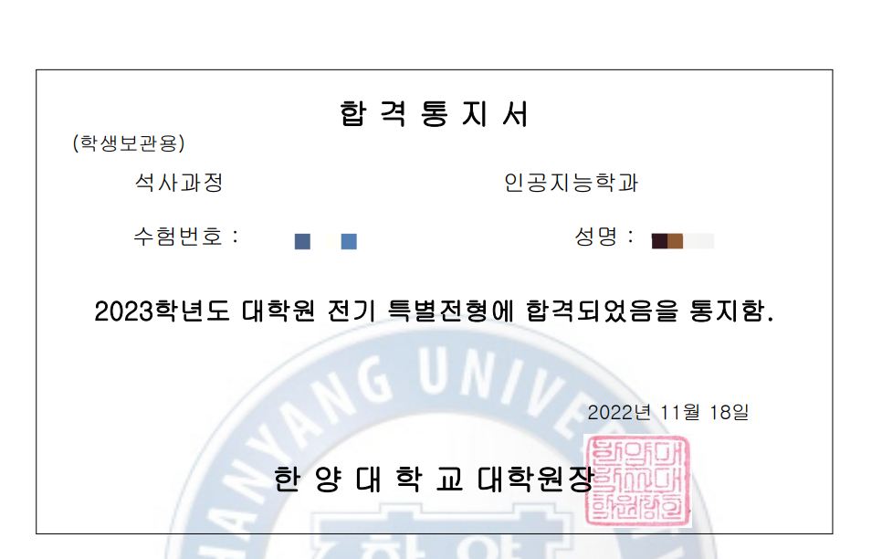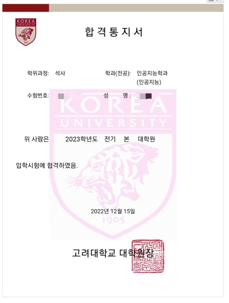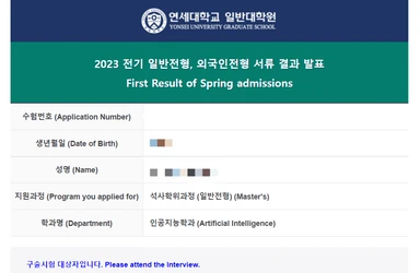 지원한 곳 : 포스텍 한양 성균관 고려 연세 인공지능, 서울대 데이터사이언스 대학원 뛰어난 스펙이 아님에도 불구하고 선생님의 자기소개서 및 연구계획 첨삭을 통해 지원한 모든 학교의 서류전형을 통과하였습니다. 면접/필기 전형의 문제는 선생님께서 알려주신 내용과 80% 정도 일치하여 큰 어려움 없이 마칠 수 있었습니다. 결과적으로 응시한 모든 인공지능/데이터 사이언스 대학원의 서류, 필기고사, 면접 모두 통과하였습니다. 시간의 제약, 개인별 장/단점을 모두 고려한 첨삭과 수업방식에 상당히 만족하였으며 인공지능 대학원 입학을 희망하고 있으나, 합격에 자신이 없어 고민인 분들께 추천드립니다.