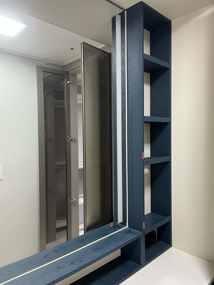오늘 하루 종일 정말 꼼꼼히 시공해주셨어요! 이사갈 집에 마음에 들지 않았던 남색 부분들과 답답해보였던 드레스룸 문을 깔끔하게 화이트로 바꿔주셨어요~ 상담도 친절하게 잘 해주시고, 필름도 아주 예쁘게 잘 붙여주셨습니다. 화장대 실리콘 마무리도 해주셨어요~ 아침 일찍부터 늦은 시간까지 정말 고생많으셨습니다~~! 현관문색깔도 맘에 안드는데 이번에 같이 못해서ㅠ 다음에 하게되면 고수님께 다시 연락드릴거예요~~^^ 주방 상하부장 변색되도 연락드릴게요! 감사합니다~!