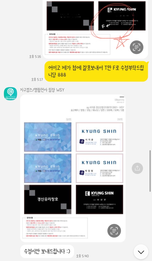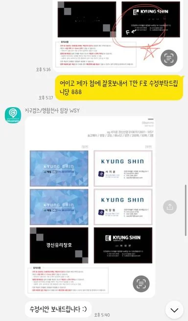 진짜 빠르고 깔끔해요👍🏻😍 숨고에 이런 업체만 있으면 얼마나 좋을까요 사실 작업전에 번거롭게 수정한 것도 많고 블루로 디자인 받았다가 블랙도 받고싶어서 디자인 바꿔서 부탁드리기도 했는데, 불편한 기색도 없이 넘넘 빠르고 침절하시게 해주셔서 놀랬어요👍🏻 진짜 작업퀄리티가 좋아요 그리고 로고 누끼따는것도 깔끔하게 해주시고, 마지막까지 제가 인쇄요청드릴때도 확인을 못해서 틀린 글씨가 있었는데 업체측에서 틀린 곳이 없는지 확인하시고 또 확인해주시는 점에 감동이였어요~👍🏻 그리고 재작업할때는 인쇄비용만 내면 명함이 뚝딱나온다는 사실!📇 명함은 앞으로 여기서 하려고요 다른곳보다 가격도 착한데 아주 만족스러워요😍🥰