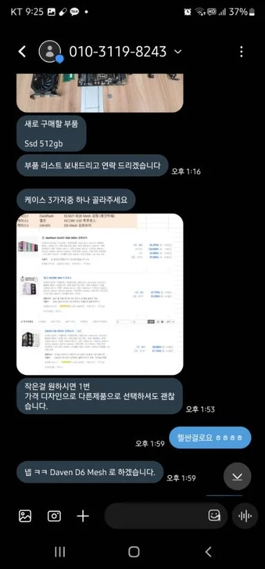 컴퓨터가 고장나서 친구에게 추천받은 숨고라는 어플에서 처음 진행해봤는데 흠잡을데 없는 친절하고 만족스런 수리를 받아 후기남깁니다. 어디가 문제였고 어떻게 진행하고 모든경우의수도 저에게 의견하나하나 물으시고 제가 선택한대로 진행해주시는게 너무좋았습니다. 당연히 업자분들도 잘하시겠지만, 이분은 오히려 전문수리점이 아닌부분이 더 제의견을 세세한것까지 들어주시는게 좋더라고요. 친한형이 설명해주면서 컴퓨터 고쳐주는 느낌이었고 견적도 하나 불만 생길거 없이 세세하게 다 적어주셔서 모두 납득이 되는 부분이었습니다. 대화를 나누시곤 바로 성향파악을 하셔서 교환할 제품도 추천해주시고 투명하게 재료비도 모두 공개를하셔서 진행을 해주시고 과한 추천같은 것도 전혀없었고요. 나중에 새컴퓨터라도 사게되면 개인적으로 커피라도 대접하며 상담받고싶을만큼 친절하시고 컴퓨터 관련 지식도 상당하십니다. 거리가 멀어서 못온 제친구(컴장인)도 진행상황을 보더니 아주합리적이고 좋은분 만나서 잘했다고 이야기하더라고요. 새로 사야하나 막막했는데 감사히 잘쓰겠습니다 숨고, 또 하시는일도 더더욱 번창하세요