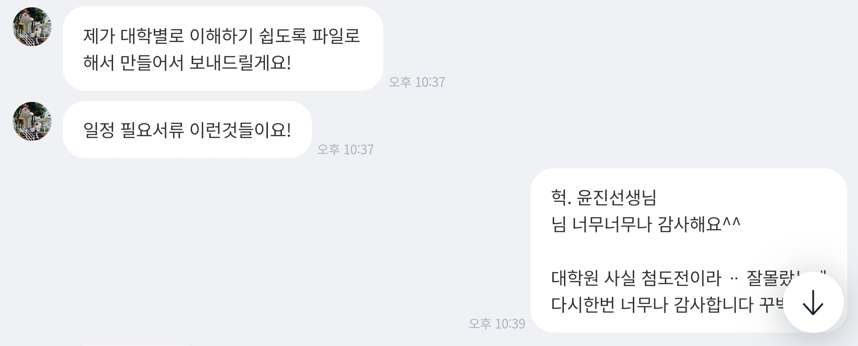 대학원 도전을 결심했지만, 나이도 많고 모르는 게 많아 걱정이 많았어요. 그런데 우연히 윤진 선생님을 만나게 되면서 저도 모르게 마음이 놓였고, 준비 과정이 이렇게 든든할 수 있다는 걸 새삼 느꼈습니다. 저렴한 비용에도 불구하고, 서류 준비부터 면접까지 세심하게 챙겨주시는 윤진 선생님의 열정적인 모습에 감동받았습니다. 정말 이 과정 하나하나가 선생님의 완벽한 지도로 이루어지고 있다는 것을 실감하고 있어요. 그 어떤 말로도 부족할 것 같지만, 윤진 선생님을 만난 건 제 인생에서 커다란 오아시스를 만난 것처럼 힘이 되는 경험이었어요. 합격 소식을 들을 수 있다면, 그때는 더욱 기쁜 마음으로 후기도 꼭 남기겠습니다.