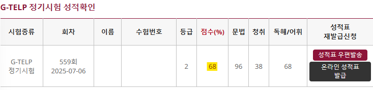 📌 결론: ABC밖에 모르는 영어 노베이스 끝판왕인 제가, 지텔프 시험 원트에 점수 달성했습니다! 먼저 제 영어 실력부터 말씀드릴게요. ceiling = 천장, course = 과목도 이번에 처음 알았고, 뷰리폴, 캘린더 같은 단어들도 뜻은 알지만 철자는 한 두글자 맞출 수나 있을까요? 영어에선 유치원생이 더 똑똑할 정돕니다. 졸업요건 때문에 2주 안에 어학 점수가 꼭 필요했고, 토익, 토스, 오픽 전부 처참했어요. 운 좋게 찍어서 토익 300점 정도 나온 적 있어요..ㅎ 더 말 안해도 제 실력 아시겠죠..? 지텔프도 “기대 말자”는 마음으로 무료 수업만 들으려 했습니다. 그런데 후기를 보니 저보다 영어 더 못한 분들도 한 번에 붙었다는 리뷰가 엄청 많았고, 떨어지면 어학대체수업 듣자 다짐 후 마지막 도전으로 수업을 결제 후 진행했습니다. 🎈 수업을 듣고 점수까지 낸 입장에서 말하자면, ✅ 단순한 문법 강의가 아닌, “지텔프 점수 따는 전략”을 알려주는 수업 ✅ 영어 실력 향상보다, 점수 필요하신 분에게 더 맞는 수업 🎈 이런 분들께 특히 추천합니다~ ✅ 영어 기초가 제로에 가까우신 분 ✅ 단어 외우기 및 많은 과제 부담스러운 분 ✅ 시간과 실력 둘 다 없으며, 지푸라기라도 잡고 싶으신 분 🚩수업 후에도 지속적인 케어 = 돈이 아깝지 않아요. (20만원) 🚩선생님 친절 그 자체👍(노뻘쭘) " 2주란 짧은시간 안에, 문법은 10분컷 = 96점 (1개 틀림 → 막판에 바꿔서 틀림) 나머지 점수내기 전략으로 지텔프 레벨2: 총68점 이라는 점수 취득! " 전 리뷰 안쓰는 사람인데 600자 제한이 아쉬울 정도네요 😥
