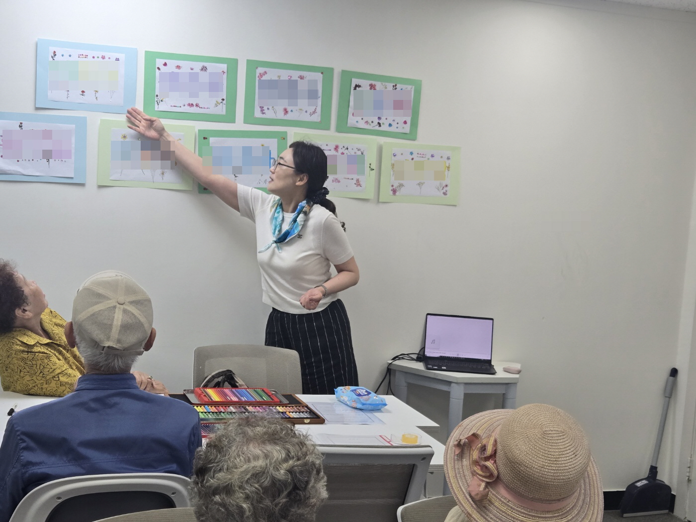 정서 미술활동이란 단순한 미술활동이 아니라, 어린 시절의 추억, 가족 이야기, 자연과의 경험 등을 떠올리며 기억을 되살리고 정서적으로 안정되는 시간을 가졌습니다. 강사님은 참여자의 감정 흐름에 세심하게 반응하며, 말로 표현하기 어려운 감정까지 활동 안에 자연스럽게 녹아들 수 있도록 잘 이끌어 주셨습니다. 총 10회기의 프로그램이 진행될수록 타인과의 소통에 대한 자신감이 생기고, 활동 후에는 참여자들 간에 따뜻한 공감대가 형성되는 변화를 느낄 수 있었습니다. 참여자들의 우울감과 고립감이 줄어들고, 오랜만에 웃고 이야기하며 사람들과 함께하는 즐거움을 경험하였습니다. 전반적으로 정서적 회복과 관계 회복에 큰 도움이 되었던 뜻깊은 시간이었습니다. 활동이 끝난 후에는 참여자들 간에도 자연스러운 공감과 따뜻한 분위기가 형성되어 관계 회복에도 도움이 되었습니다. 나만의 속도와 감정으로 참여할 수 있어서 부담도 없었습니다. 누군가 정서적인 위로와 회복이 필요하다면 이 강사님을 꼭 추천드리고 싶습니다. 한 번쯤은 초빙해보시길 권합니다.