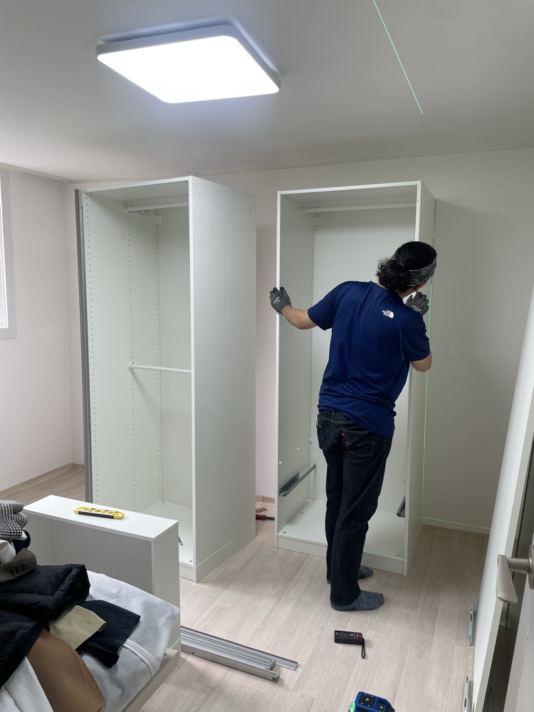 설명도 꼼꼼하게 해 주시고 작업도 꼼꼼하고 깔끔하게 하셔서 너무 만족했습니다. 너무 친절하게 말씀해주셔서 감사했구요. 특히 바닥이 매우 고르지 못해 옷장 설치 걱정이었는데 너무 잘 맞춰주셔서 정말 만족합니다. 더운 날씨에 너무 고생 많으셨고 감사합니다. 다음에 또 가구 할 일 있으면 연락드리고 싶습니다. :) 바로 정리하는 바람에 가구만 사진을 못 찍었네요. ^^;;