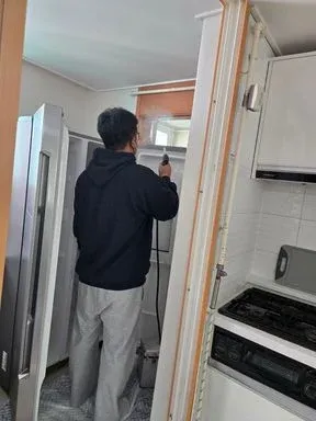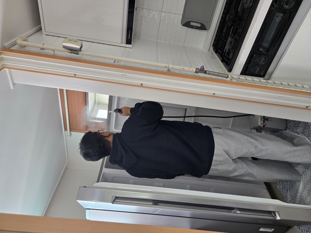 다용도실 천정누수로 차단기가 내려가 냉동.냉장 식재료가 녹아 흐른자국이 방치 보험사와 2달여간 견적때문에 방치하여 천정,벽지등에 곰팡이가 피어 냉장고 겉표면까지 내려앉음 결과: 윗부분 ,뒷부분 모터부분 문짝 패킹 안쪽 냉기 나오는부분 까지 스팀 열소독 곰팡이 살균소독 친환경 세제를 사용한다는게 마음에 들고 끝나고 건조 마무리 주변 청소 정리 까지도 깔끔 매너가 참조은 업체 사장님^^ 잘 선택한것이 제가 운이 좋은것 같습니다.부담이 없는 가격대라 정말 좋았어요. 번창하세요