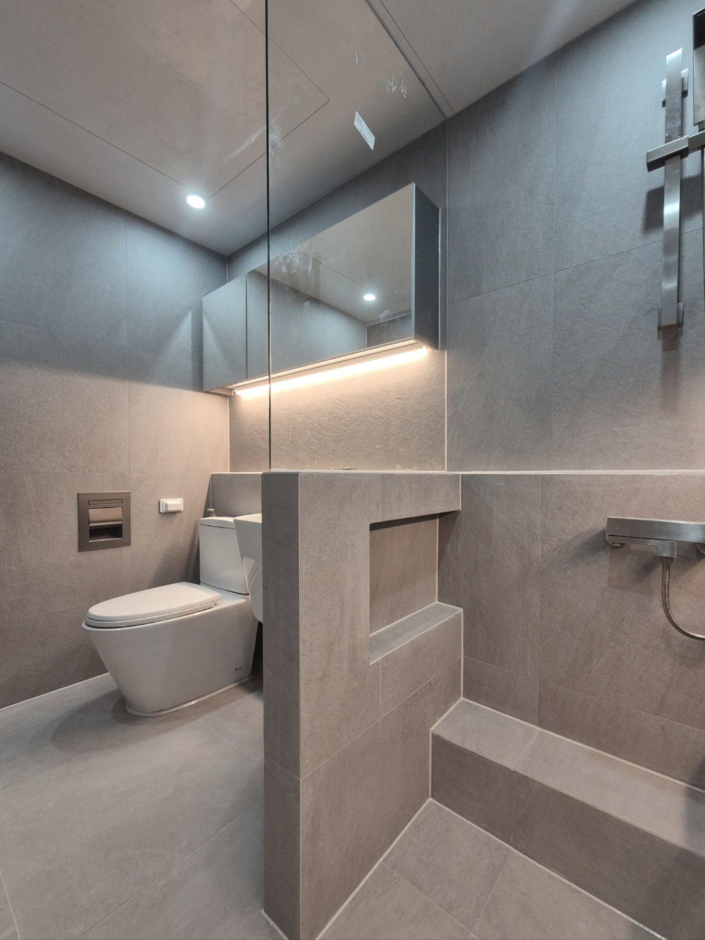 타일, 세면대, 변기, 천장, 샤워부스, 젠다이